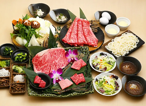 黒毛和牛ロース肉をメインとした焼肉とすき焼きが一度に味わえる当店自慢のフルコースです。ホットペッパー限定で、人気の牛タン塩(豪州産)がプラス。焼肉からお召し上がりいただき、そのあとすき焼きをご堪能いただけるコースです。〆のうどんでお腹も大満足♪是非ご賞味下さい。