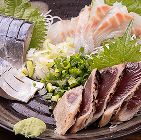 当日の朝に仕入れた、とれたて新鮮なお刺身です。旬の魚介を厳選しており、鮮度抜群でとろけるような食感と、魚本来の旨みをご堪能いただけます。まずは、何もつけずにそのままお召し上がりください。