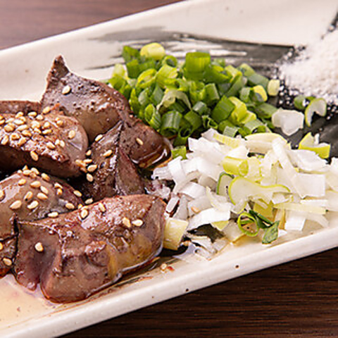 新鮮な鶏レバーを、ゴマ塩で香ばしく焼き上げました。とろけるような口どけと、レバーの濃厚な旨みが楽しめます。ゴマの香ばしい風味と塩加減が、レバーの美味しさを引き立てる一品です。