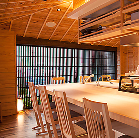 【五感でお食事を楽しむカウンター席】お一人様のでのご来店や、カップル・ご夫婦のデートなど少人数でも気兼ねなくお過ごしいただけるカウンター席は、目前で調理のライブ感が楽しめる特等席。