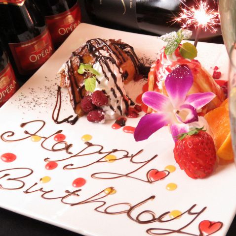 誕生日やお祝い事もご対応可能。特製デザートで華やかにお祝いいたします。
