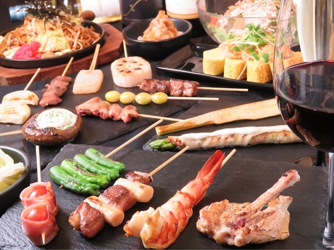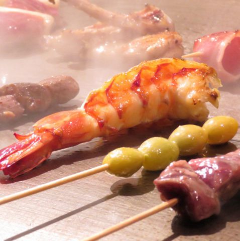 こだわり創作鉄板串も豊富にご用意しております!食材本来の味を最大限に引き出した、シンプルな味付けでお楽しみ頂けます♪お酒との相性も抜群で、お食事の後のデザートもおススメです!お誕生日や記念日などのお祝いの際は是非当店でお召し上がりください!