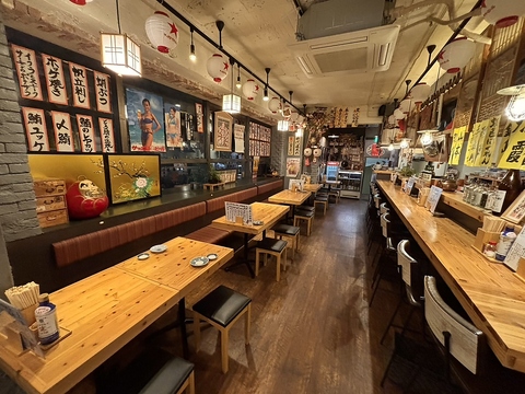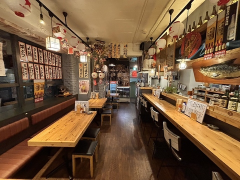 天井には風情ある提灯や凧が飾られた、和の趣を感じる居酒屋です。柔らかな照明が心地よい空間を演出しており、ゆったりとした時間が流れる中で心安らぐひとときをお楽しみいただけます。当店自慢の料理や豊富なお酒をご堪能いただきながら素敵な時間をお過ごしください。