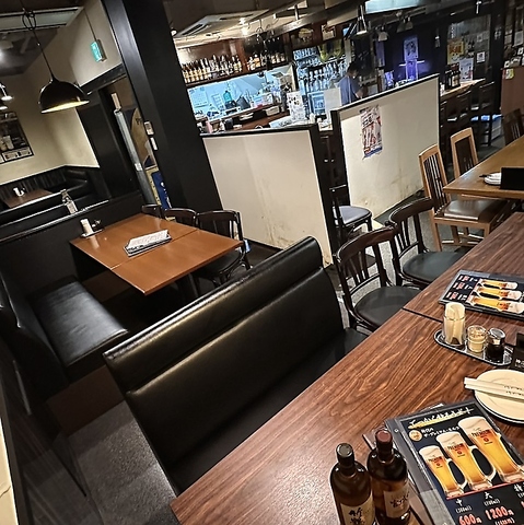 奥に仕切りもございますので、半個室としてのご利用も可能。人数に応じてお席の配置も可能。