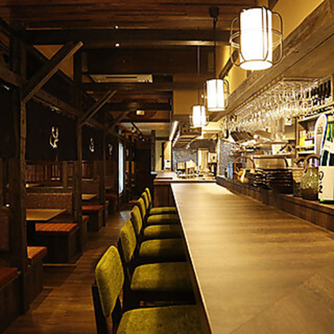 ゆったりとしたカウンター席は常連様にも人気のお席です。絶品料理とお酒を、お店の雰囲気にのまれながらお愉しみいただけます。