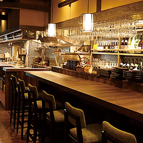 ゆったりとしたカウンター席は常連様にも人気のお席です。絶品料理とお酒を、お店の雰囲気にのまれながらお愉しみいただけます。