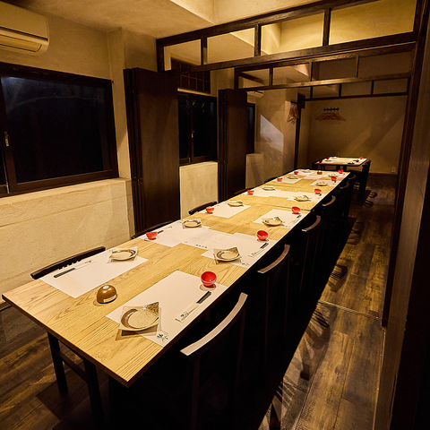 店内は全席個室でご案内。個室は2名様~最大40名様までご利用可能です。テーブルの完全個室を完備。歓送迎会・誕生日・記念日・接待・デートなどに是非ご利用下さい。団体様の昼宴会もご相談下さい。【博多 居酒屋 割烹 もつ鍋 水炊き 個室 飲み放題】