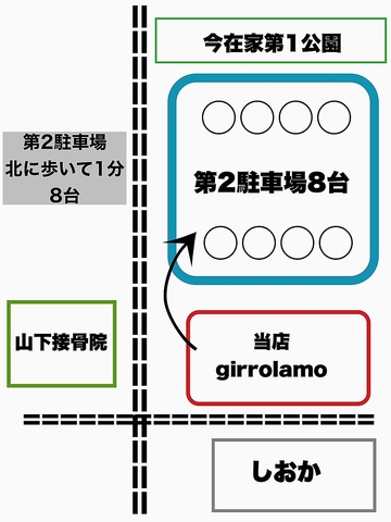 | 駐車場 | あり :お店の前4台店舗北側に徒歩1分第2駐車場8台合計12台出来るだけ乗り合わせでご協力お願いします。 |