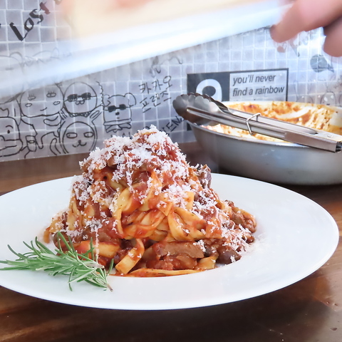 粗挽きデュラムセモリナを100%使用した、のど越しの良いコシの強い麺が自慢です。シェフが1分1秒の茹で加減にこだわり、ソースに合わせて麺の種類を使い分けることで、一皿ごとに最高のアルデンテを実現☆男性でもご満足いただけるよう、ボリュームも満点!熟練の技が光る、こだわりの本格パスタを心ゆくまでお楽しみください。