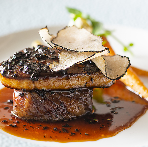 【アミューズ】【前菜】【メインお肉料理】 黒毛和牛をご希望のお客様はプラス料金1,500円(税込)、ロッシーニをご希望の場合はプラス料金4,000円(税込)にて承っております。ご予約時にお申し付けください。【本日のデザート】 コーヒー又は紅茶 ※写真はイメージです※別途サービス料10%頂戴いたします。