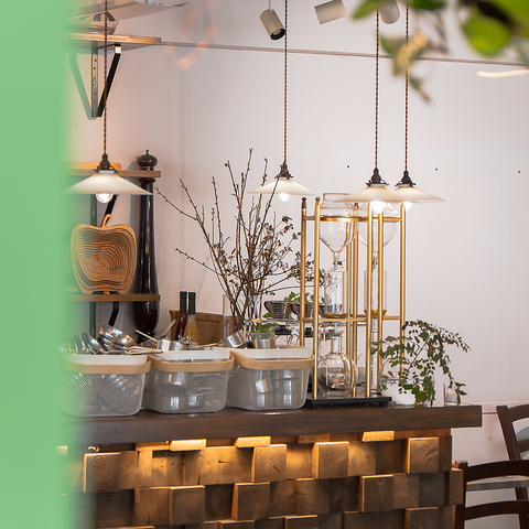 お店へ到着すると、まずお出迎えしてくれるのが草花たちです。晴れた日は風にそよぐ彼らの姿に、雨の日は雨水で潤う姿に心癒されます。草花の彩りは手入れする側の楽しみでもあり、また道行く人たちの楽しみの一つになることも願いつつゆるりとガーデニングに励んでいます。