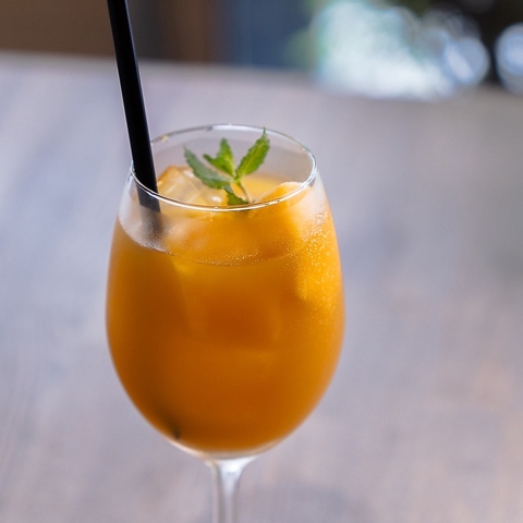 とろけるような甘さの桃をたっぷり使った、ジューシーで華やかな白サングリア。爽やかな白ワインが、桃の香りを引き立てます。