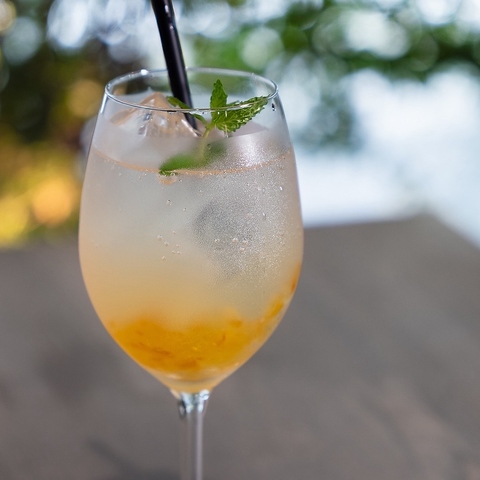 白ワインの泡にフルーツをたっぷり閉じ込めた、爽快感あふれる一杯。乾杯にもおすすめです!
