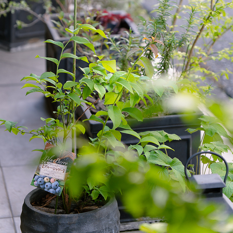 お店へ到着すると、まずお出迎えしてくれるのが草花たちです。晴れた日は風にそよぐ彼らの姿に、雨の日は雨水で潤う姿に心癒されます。草花の彩りは手入れする側の楽しみでもあり、また道行く人たちの楽しみの一つになることも願いつつゆるりとガーデニングに励んでいます。