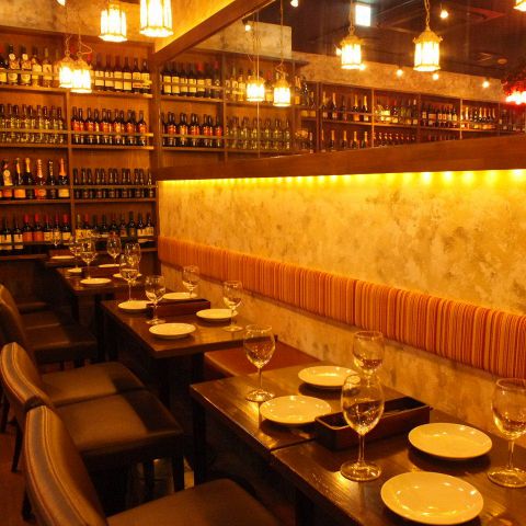 ワインセラーには常時80種以上の厳選された各国自慢のワインが並んでいます♪ワインボトルもALL1900円でOK!ワイン好きやそうでない初心者にも楽しんで頂けます♪