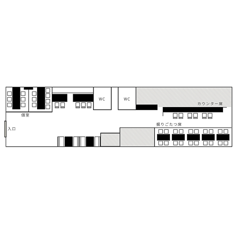 | 総席数 | 60席(8名個室×2/テーブル席/20名様迄の掘りごたつ席あり。) |