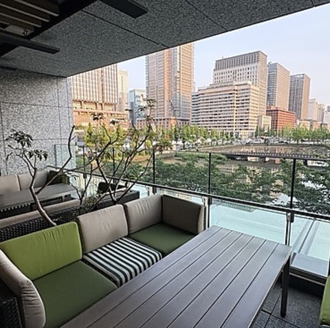 皇居を囲む緑を目の前に、開放感溢れるテラス席。冬はヒートパネルやブランケットをご用意しております。
