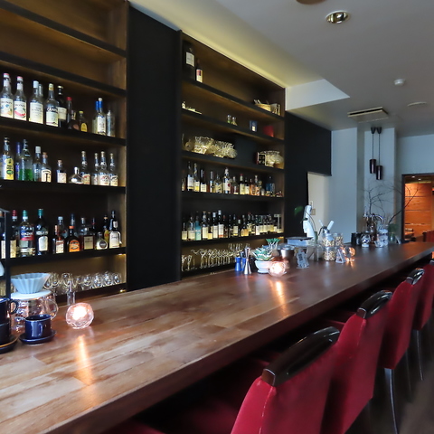 おしゃれなバックバーを眺めながら1杯。バーテンダーの手元が見られるのもバーならではの楽しいポイント☆女性のおひとりさまも居心地がよい空間とドリンクをご提供致します♪