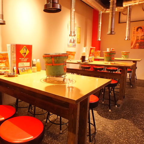 炭火の香りと煙が似合う、昭和レトロな空間。古き良き焼肉屋の空気感のなか、鮮度抜群のホルモンと一杯の酒をじっくり味わう。全席喫煙可能、どこか懐かしく落ち着ける空間です。