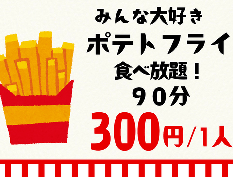 祝前日除く日~木曜日限定!ポテトフライ食べ放題90分300円/1人!※各種割引との併用は出来ません