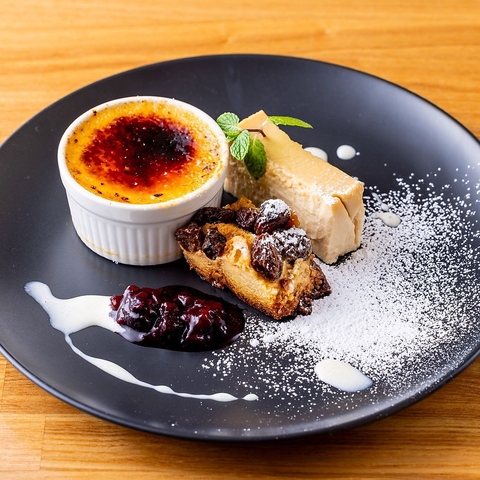 カブリオのデザートは、いずれもシェフが自信を持ってオススメする特製の逸品。特に「女性限定コース」でもお楽しみいただける「クレームブリュレ」は表面のカラメルはカリッと香ばしく、中はとろけるようになめらかで濃厚。贅沢な食後のデザートとして女性に大人気です。落ち着いた空間で、至福の時間をお楽しみください。