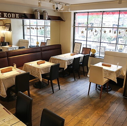 「神戸牛ステーキは敷居が高い…」そんなイメージを覆す、明るく開放的なカフェレストラン風の店内が自慢です♪お一人様でのランチから、観光の合間のリラックスタイムまで、どなたでも気軽にご利用いただけます◎木目調の落ち着いたインテリアとオシャレな空間は、肩肘張らずに最高級のお肉を味わうのにぴったりです。ぜひご来店ください。