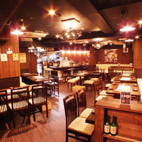 ゆったりくつろげるテーブル席をご用意♪温かみのある抑えた照明が広々とした店内を心地よく照らし出します。4名様掛けのテーブルを5卓ご用意しておりますので、お友達や気の合う仲間同士、ご家族様でのお食事など、様々なシーンにご利用いただけます。心地よい時間をお過ごしください☆
