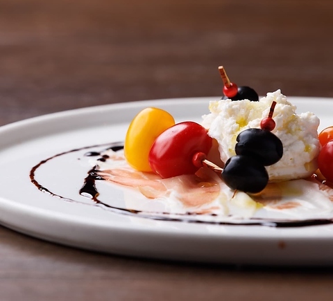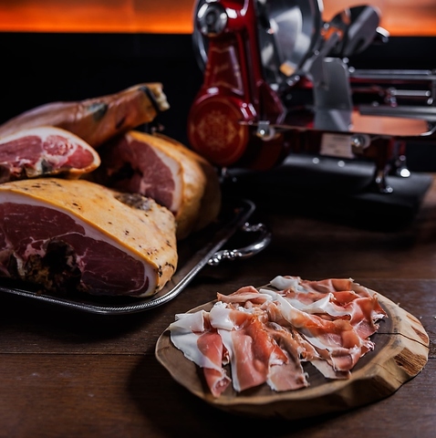 旧下田村の透き通る水とコシヒカリで育てられた下田豚!長期熟成ならではのとろける旨みが特徴的な生ハムとイタリア産ブラータチーズの相性が抜群!!!最初のシャンパーニュなどに合わせると更に抜群!!Bitでしか味わえないお料理となっております!
