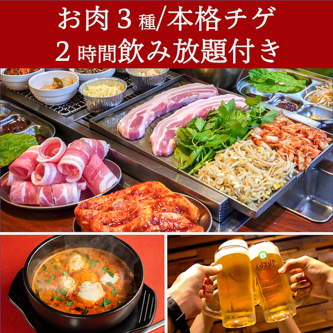 冬限定コース!具沢山の韓国定番鍋「プデチゲ」とサムギョプサルが同時に堪能できる大満足コース。女子会や宴会にもおすすめ!