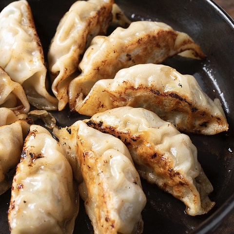 100%黒豚使用の当店の餃子。熱々の鉄鍋でご提供!