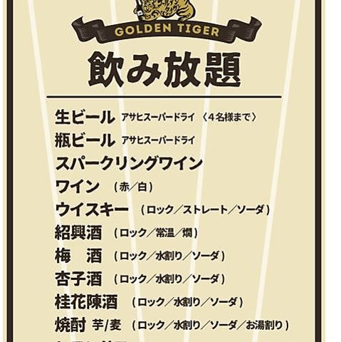 ドリンクメニュー | ゴールデンタイガー 渋谷宇田川町 - クーポン・予約のホットペッパーグルメ