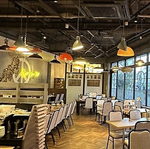 開放的な空間が広がる店内。駅近で好立地、各種ご宴会に最適。着席時60名/立食時100名様までOK。