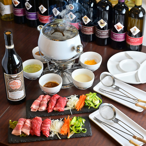 ラクレットチーズとスイス風しゃぶしゃぶのフォンデュシノワーズ!スイスの2つのメイン料理が楽しめ、さらに食事もスイス料理のプレミアムコースです。