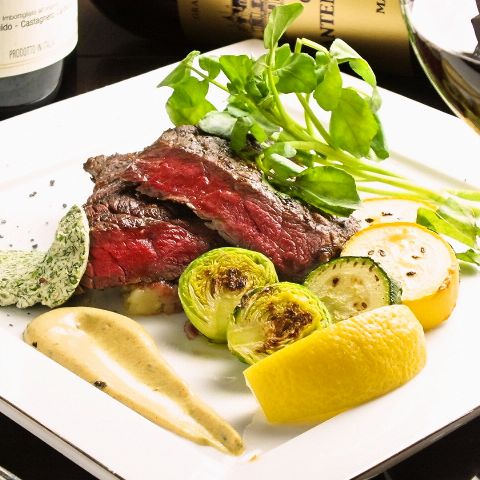 A4ランクの茨城県産黒毛和牛を使用。牛のおしりの部分を使うことで脂を抑え、柔らかく、さっぱりした口当たりながらも噛みしめる度に旨みの溢れるグリルです。赤ワインやビールにぴったりです。