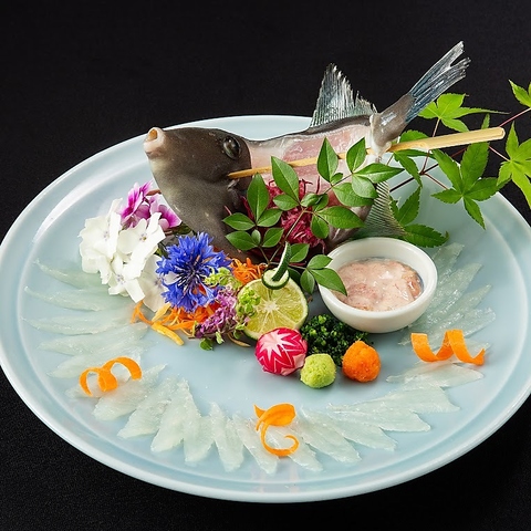 海流がぶつかる「玄界灘」にはプランクトンが多く、自然の恵みを受け、美味しい海鮮が取れることで有名。漁港で直接買い付け、生け簀へ直送、できるだけ人の手に触れさせず鮮度を保ち、板前の素早い熟練した包丁さばきで、輝き透き通った「活造り」に。当店自慢の鮮魚の味をどうぞお楽しみください。