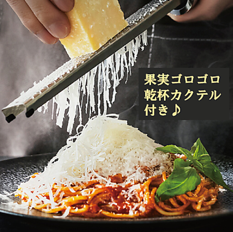 女子会に◎〈果実ゴロゴロ乾杯カクテル付き〉サラダとパスタにはた~っぷりチーズを目の前で♪3h飲み放題!