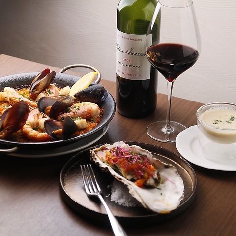 店主が長年の経験を活かして選び抜いた、フランス産メインの豊富なワインリストをご用意しております◎定番の銘柄から希少な高品質ワインまで、お料理の美味しさを一層引き立てる一杯をご提案♪おまかせのオードブル5品にドリンク2杯が付いたお得なコースもあり、ワインバー感覚でのご利用も大歓迎です!