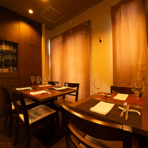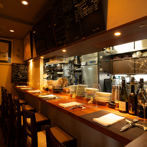 照明が穏やかに灯る店内は、シックで洗練されたデザインが魅力です。都会の喧騒を忘れさせてくれる落ち着いた雰囲気の中、丹精込めた一皿を心ゆくまでお楽しみいただけます。カウンター席も完備しており、おひとり様でのご利用にも最適です。日常の疲れを癒やす心地よい場所で、贅沢な時間をお過ごしくださいませ。