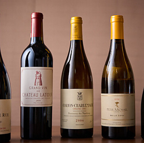 シェフ厳選!料理を彩る世界のワイン(17文字) 【キャプション】 フランス・ボルドーやブルゴーニュの銘醸ワインをはじめ、アメリカ産のジンファンデルやシャルドネなど、世界各国から厳選。オーナーシェフが料理との相性を計算し尽くした「マリアージュ」をご提案します。極上のフレンチとワインが織りなすハーモニーをご堪能ください。