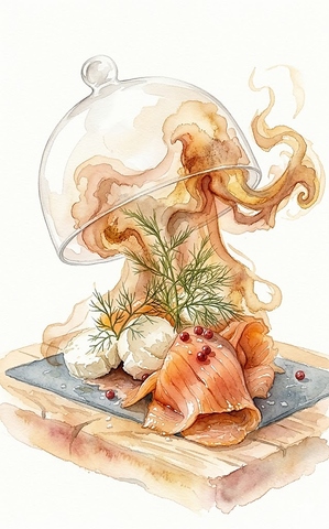 立ちのぼる香りが、食欲をほどく一皿。ノルウェー産サーモンを瞬間燻製で仕上げ、ふわりと広がるスモーキーな余韻。なめらかなクリームチーズのコクが重なり、口の中でほどけるような贅沢なハーモニー。五感で楽しむ、特別なひとときのための一皿。
