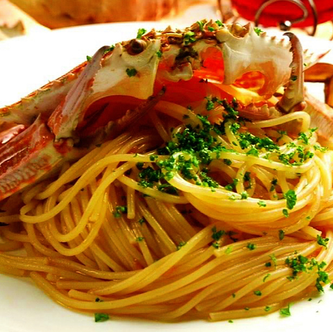渡り蟹の濃厚な旨味を丸ごと味わえる、贅沢なトマトクリームパスタ