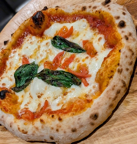 手間ひまかけた自家製の生地で焼くマルゲリータピザ。ワインとの相性は抜群です。
