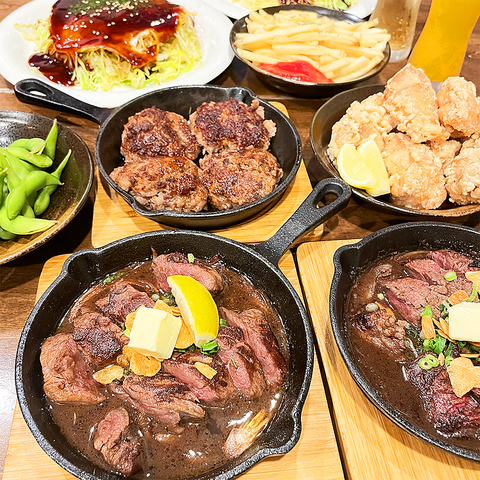 広島の鉄板文化を象徴するお好み焼きを中心に名物のハラミステーキ、焼きポテトサラダや、鉄板技術を使用したチーズオムレツをご用意しています。ドリンクも泡レモンサワーや紅茶ハイなどオリジナリティのある商品、味の違うレモンサワー数種、スコッチやバーボンのハイボールがございます。