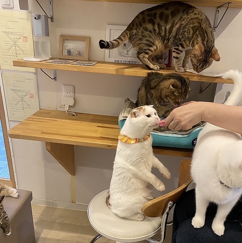 小学校5年生以上のご利用限定/ご来店時15分程お待ち頂く可能性がございます/当日予約の場合は店舗までお問い合わせ宜しくお願い致します。見てるだけでも触れ合っても楽しめる空間!ネコ好き会・女子会などでの貸切ご利用もできるのでお気軽にご相談ください!その他デートやお仕事帰りの癒しにも◎