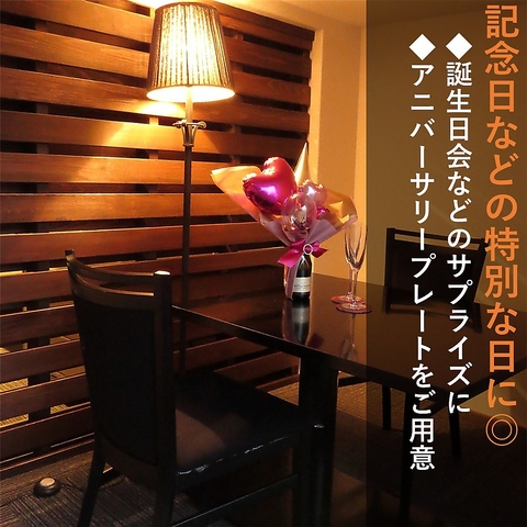 2名様限定の半個室や4名様までのソファ半個室をご用意。絶品の創作イタリアンをタ堪能する女子会コースは3300円(税込)~♪お祝いのメッセージプレートやサプライズの演出などもお気軽にご相談下さい!