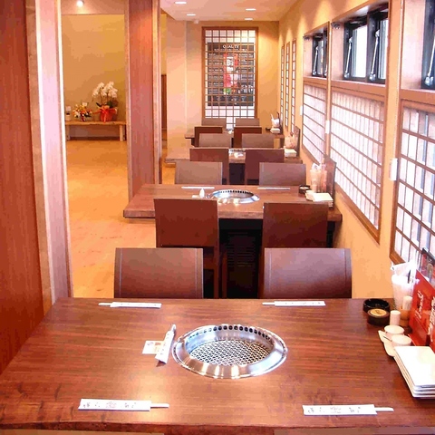 和と韓国の融合を感じさせる温かみのある空間が広がっています。木の温もりを感じる内装や、落ち着いた色調の照明が心地よい安らぎを提供し、訪れる人々を迎え入れます。座敷やテーブル席、個室があり、家族や友人との会話を楽しむのに最適な環境です。大きな看板がお客様をお出迎えします。特別な時間をお過ごしください。