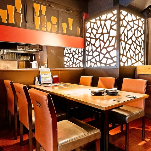 落ち着いた店内空間にあるテーブル席は個室ではなくとも、ゆったりとお食事を楽しむことが可能です。宴会コースや美味しい逸品料理、種類豊富なドリンクをご用意してお待ちしております。