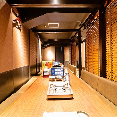 大人数での宴会に最適な居酒屋として、広々としたテーブル席をご用意。飲み放題付きコースも充実しており、個室の利用も可能です。設備や環境が整っているので、幹事様が安心してご予約いただけます。