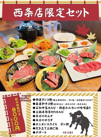 厳選和牛3種 特上厚切りタンを盛り込んだセットです!!勿論炊き立て土鍋ご飯、2時間飲み放題付!!