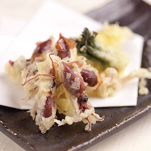 天つゆと相性抜群!噛めば噛むほど染み渡るホタルイカの旨み。